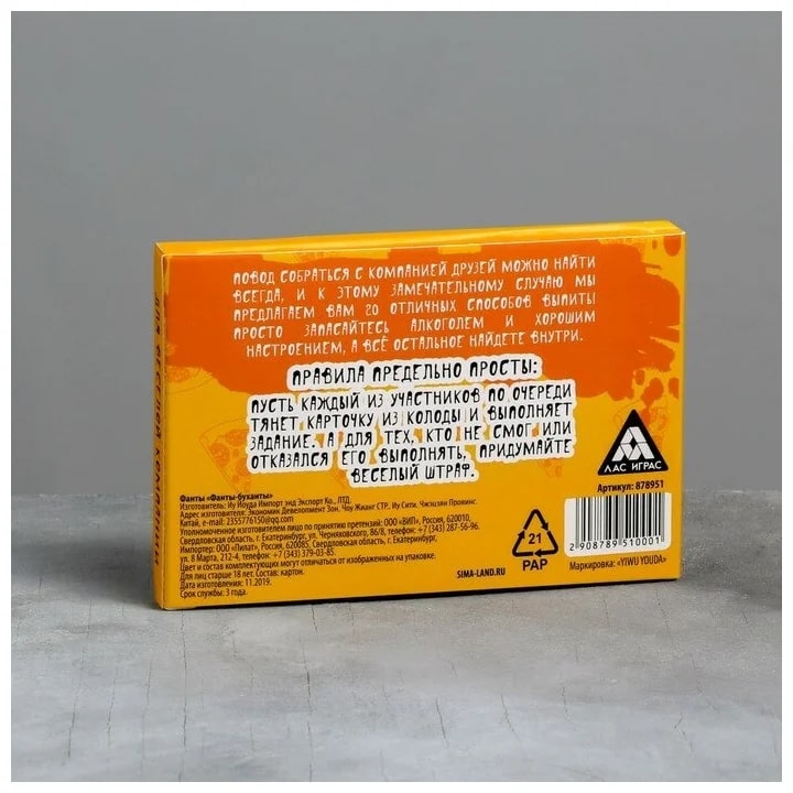 Купить игра для компании "фанты буханты" 20 карт от 100 руб. с доставкой до пункта выдачи в Мамоново. Интернет магазин ДекаМаркет. Оплата при получении.